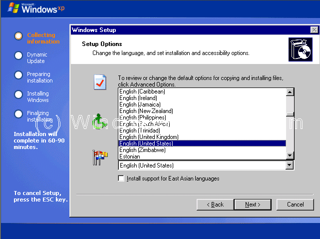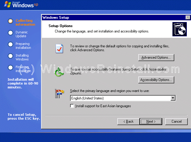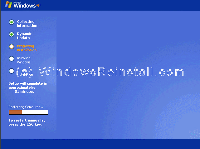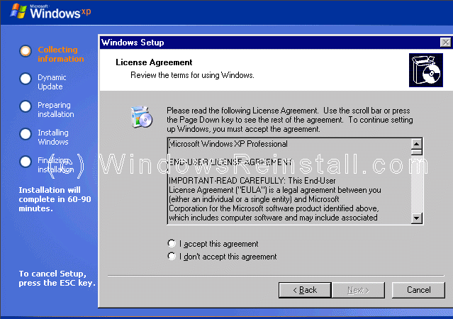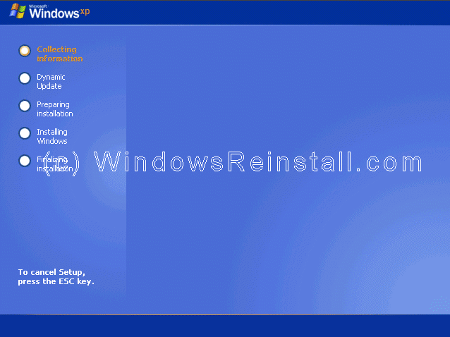 "INSTALL WINDOWS XP" by clicking on it with the mouse.