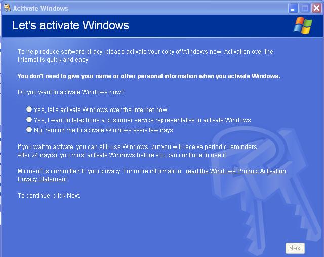 activate Windows screen will appear. Click on "Yes, lets activate Windows